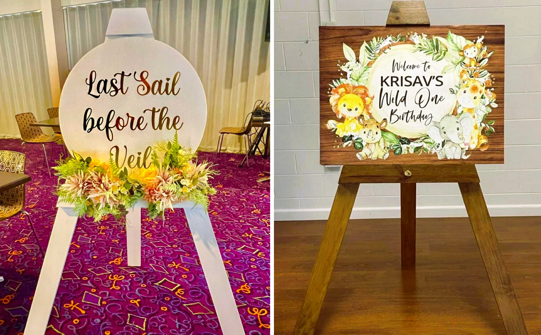 Custom welcome signs, seating charts, and menu boards to guide and delight your guests.